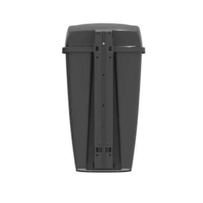 Witterungsbeständiger Außen-Abfallbehälter aus robustem HDPE-Kunststoff für Restmüll. Volumen 50 l, Höhe 81,1 cm, Breite 45,2 cm, Tiefe 35,8 cm, Eigengewicht 4,2 kg. Belastbarkeit 20 kg. Das halbgeschlossene Deckel-Design schützt den Inhalt vor Regen und Schnee.